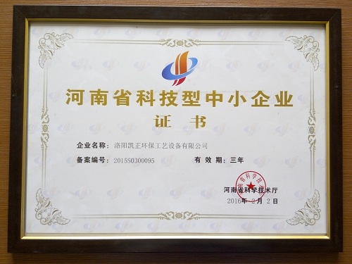 近日,洛陽凱正環(huán)保工藝設(shè)備有限公司榮獲“河南省科技中小企業(yè)”“ 科技創(chuàng)新先進(jìn)企業(yè)”“ 立信示范單位”。